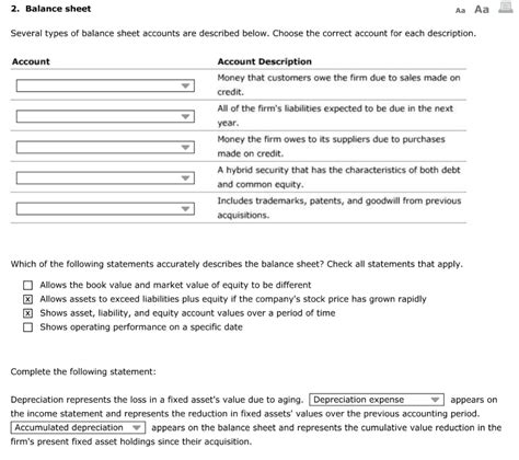 Solved 2. Balance sheet Aa Aa E The balance sheet provides a