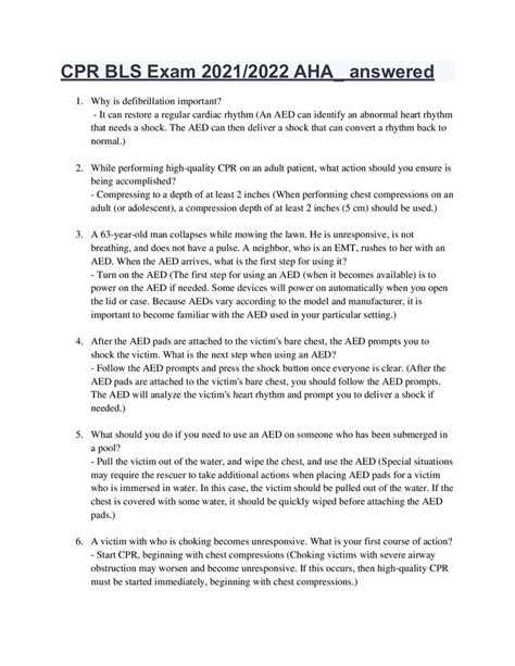 BLS Answer Key PDF Cardiopulmonary Resuscitation Cardiac Arrest