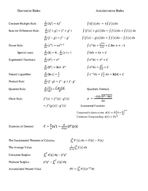 Antiderivative Formula Sheet My XXX Hot Girl
