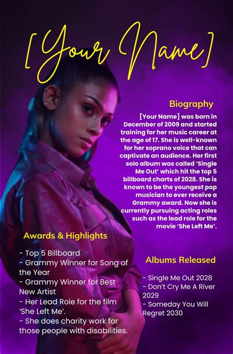 Artist One Sheet. Perfect for artists & bands. With one click, we automatically add artist info,.