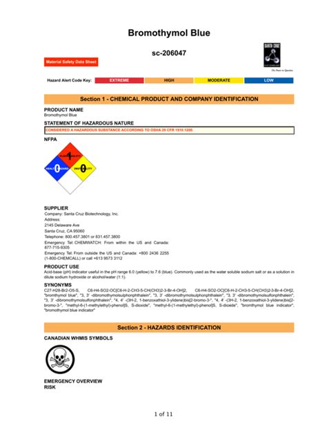 Bromothymol Blue Safety Data Sheet. Identification bromothymol blue, sodium salt, water solule, indicator ac403260000;