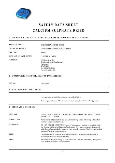 Calcium Sulfate Safety Data Sheet. Calcium sulfate product number : Web 8 rows product name calcium sulfate, anhydrous cat no.