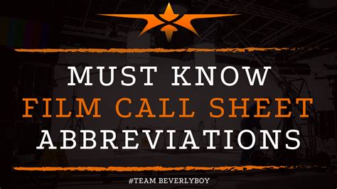 Must Know Film Call Sheet Abbreviations Team Beverly Boy