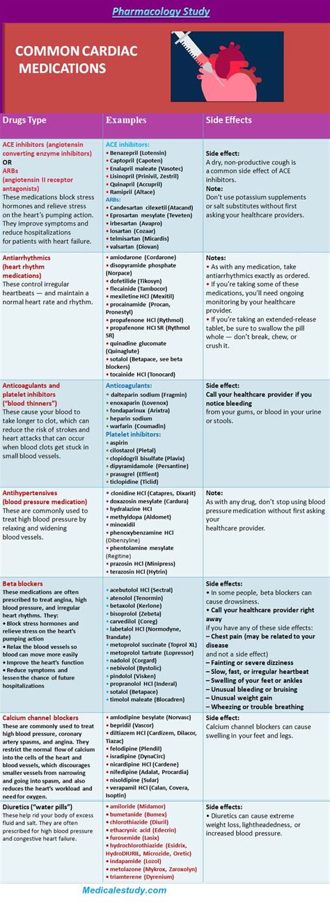This table is a reference for. Web learn about the categories, examples, side effects and notes of medications for heart conditions.