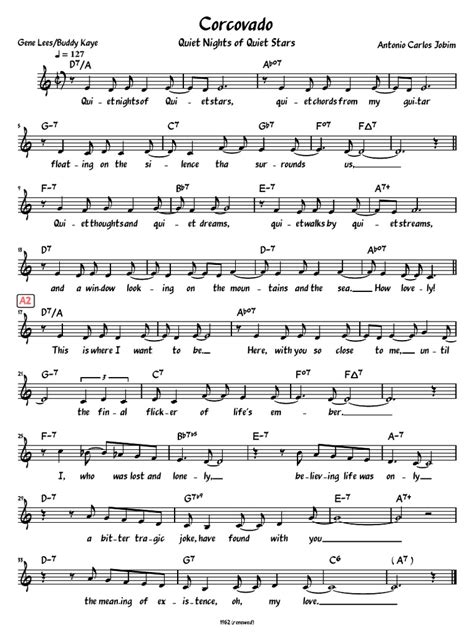 Corcovado Lead Sheet. Web download and print in pdf or midi free sheet music for corcovado by antônio carlos jobim arranged by dick schmitt for vocals (solo) corcovado (lead sheet with lyrics ) sheet music for vocals (solo) | musescore.com , download and print in pdf or midi free sheet music for corcovado by antônio carlos jobim arranged by will rowsell for piano (solo)