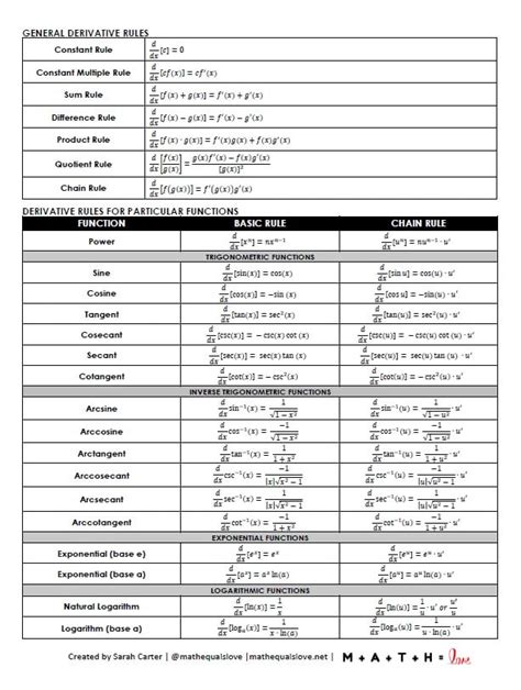 Derivative Formulas Sheet. F) = af’ sum rule:. Derivative of a constant, a: