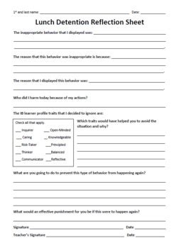 Teacher checks the box of the offense and then leaves a. Teacher checks the box of the offense and then leaves a. Web reflection sheet for lunch detention. This worksheet is designed for students who have had repeated behavior problems.