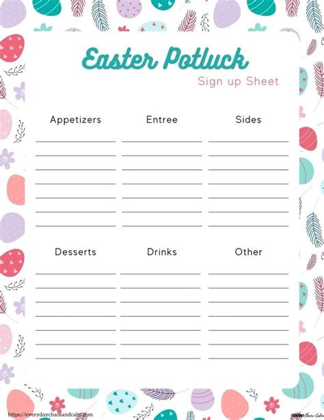 Easter Potluck Sign Up Sheet. You can share it via google. It also has a place for both name and dish the participant intends.