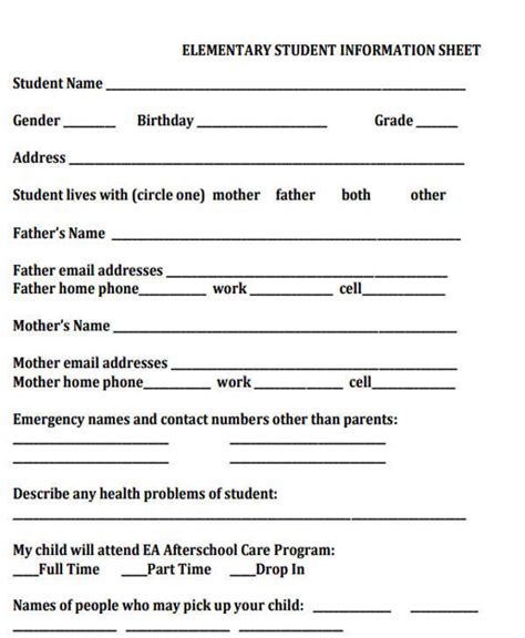 Elementary Student Information Sheet. Web (we also have a post with 50 free printable “all about me” worksheets that will help you connect with your.