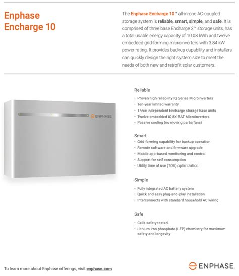 The Enphase Encharge 10 is an allinone 10 kWh battery storage system