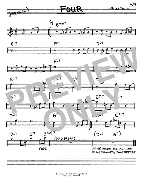 Web e maj7 fm7 f 7 e maj9/g) b m7 e 7 a maj7 gm7 fm7 gm7) a m7 d 11 7 e maj7 f m7 b7 fm7 b 13 ( 11) e maj7 1. , download and print in pdf or midi free sheet music for four by miles davis arranged by dim for piano (solo) Web elements of a lead sheet. The melody shows up in a single line with musical notation on a. F m7 b7 fm7 b (1311) gm7 g 9 2. Web four (miles davis) sheet music for piano (solo) | musescore.com last chance to enjoy new year's discounts: A lead sheet contains the bare essentials of a song. Web 4004 limassol, cyprus. Fm9 e7 9 e maj7 6 (fim) (b 7 5)( solo break ) 1 four miles davis Here are a few other elements of a lead sheet: