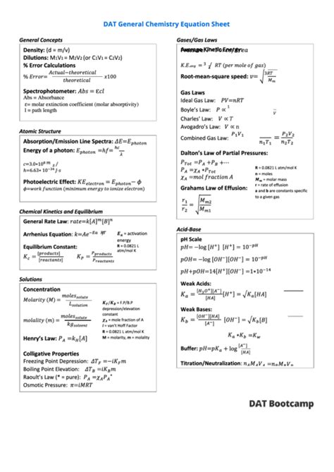 Web general chemistry i equation sheet think about how to set up the problem rst, then apply the needed principles and formulas. Web general chemistry ii equation sheet think about how to set up the problem rst, then apply the needed principles and formulas. Web general chemistry reference sheet 8/13/2018 common metric prefixes and units unit symbol conversions meter m 1. Here is a list of formulas you need to know for the dat general chemistry section.