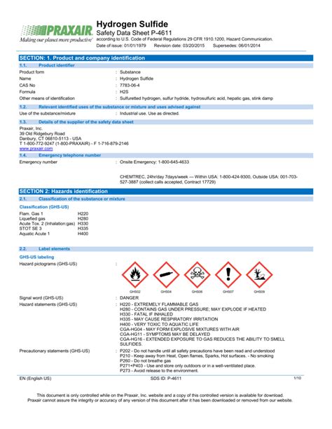 Web hydrogen sulfide product use :synthetic/analytical chemistry. Product and company identification 1.1. Identification ghs product identifier : Carbon monoxide / hydrogen sulfide / methane / nitrogen / oxygen section 1. Web hydrogen sulfide h2s safety data sheet sds p4611 section: Product identifier product form name cas no formula other means of identification : Hydrogen sulfide (h₂s) is a colorless gas with a strong odor of rotten eggs. Web safety data sheet nonflammable gas mixture: Some common names for the gas include sewer gas, stink damp, swamp gas and. Exposure to hydrogen sulfide may cause irritation to the eyes and respiratory system. Web hydrogen sulfide product use :synthetic/analytical chemistry.