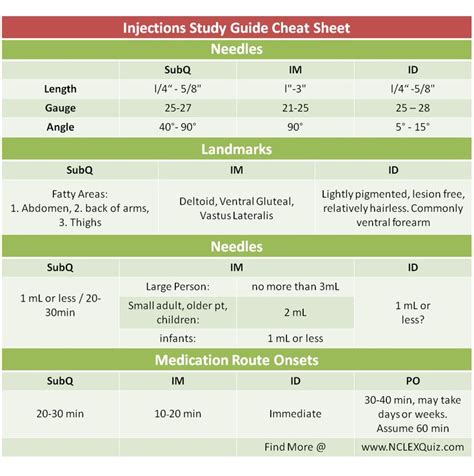 Injection Cheat Sheet For Nurses. Site should be selected based on client’s body type. Web this guide provides a comprehensive overview of subq medication administration, including anatomical sites.