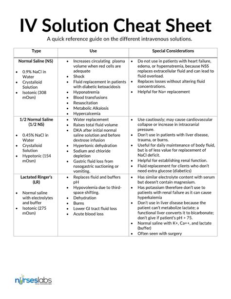 Crystalloid IV Solutions Cheat Sheet NCLEX Quiz
