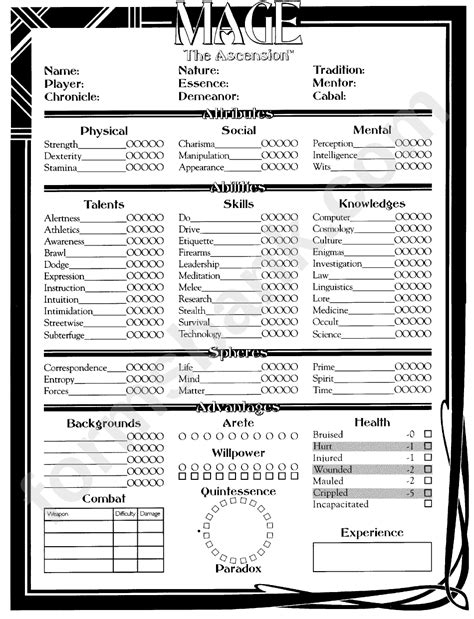 Mage Ascension Character Sheet. Web mage the ascension 20th anniversary edition character sheet ________________ooooo *7c;
