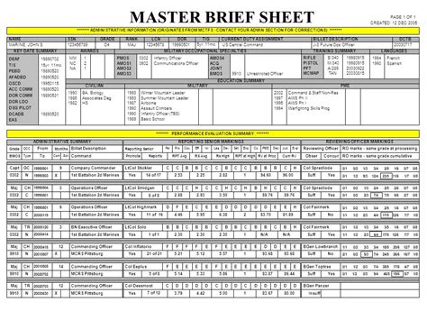 Master Brief Sheet. Web marines can order their ompf (official military personnel file) and or mbs (master brief sheet) by writing or faxing a. Web description as listed in mctfs.