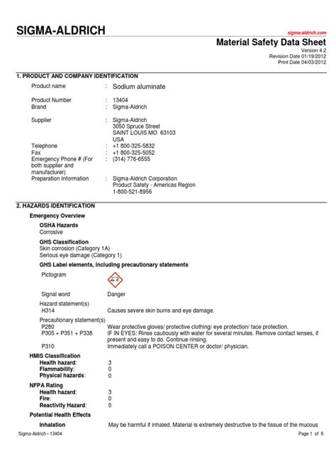 Material Safety Data Sheet Sigma Aldrich. Web we provide safety data sheets with comprehensive safety and regulatory data to promote safe product usage and handling.
