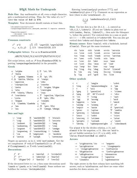 Math Cheat Sheet Latex. This cheat sheet summarizes a reference list of latex commonly used display math notation and some. Web latex mathematical symbols the more unusual symbols are not defined in base latex (nfss) and require.