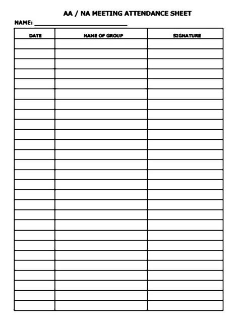 Aa/na Meeting Attendance Sheet Template printable pdf download