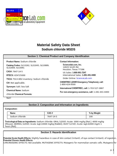 Nacl Msds Sheet. Web material safety data sheet or sds for sodium chloride 106404 from merck for download or viewing in the browser. Web hydrogen chloride, sodium oxide.
