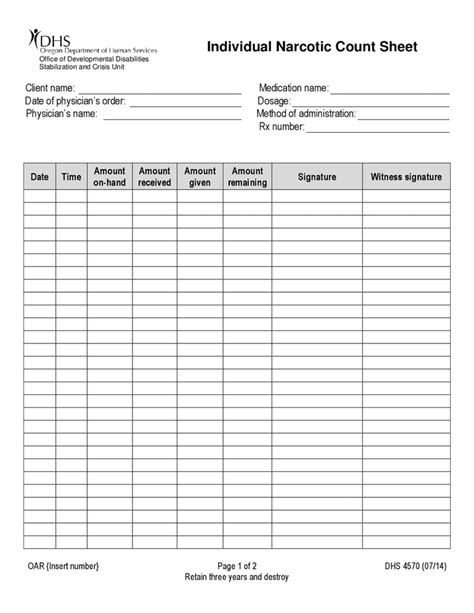 Printable Narcotic Log Sheet