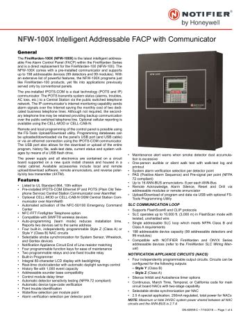 Nfw-100X Data Sheet. Web alarm verification applies to smoke detectors only.