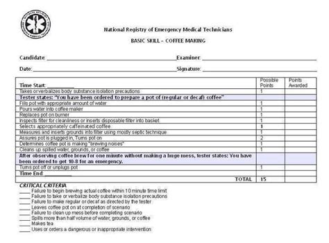 Nremt Coffee Making Skill Sheet. Web the skill sheets provide specific detail for each ems skill. You must factually document your rationale for checking any of the above critical items on this form.