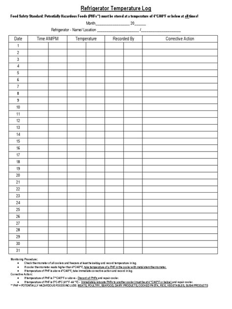 Refrigerator Temp Log Sheet. If using a temperature monitoring device (tmd;. Refrigerator storage temperature log (celsius) refrigerator storage.