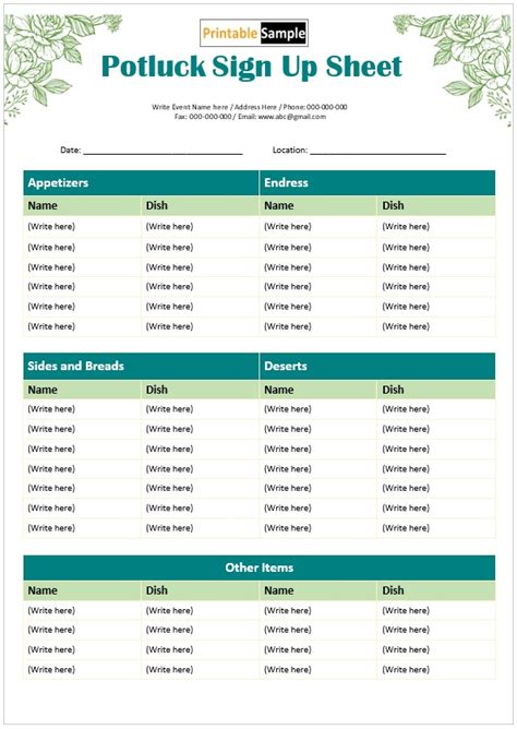 Sample Potluck Sign Up Sheet. Web grab this free printable potluck signup sheet so everyone on the guest list for the potluck can sign up for a specific. There are six different versions of.