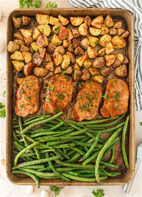 Sheet Pan Dinner Pork Chops. Web instructions preheat oven to 425 degrees and grease a baking sheet. Place potatoes and pork chops on the baking sheet and drizzle the olive oil over the pork chops and potatoes and toss.