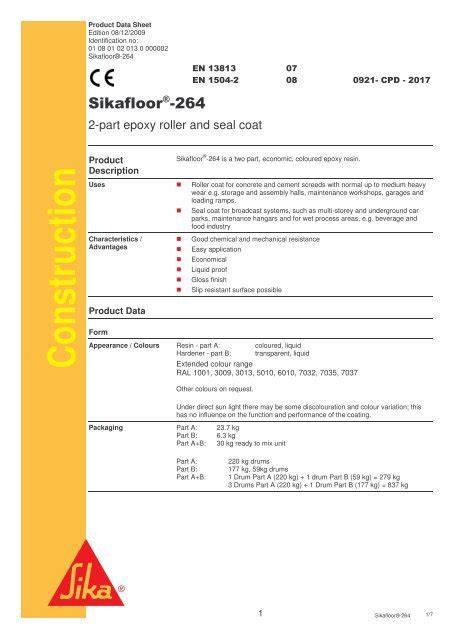 (german association for construction chemicals). May be used as a topcoat on sikafloor® epoxy flooring systems. Suitable for use in hot and tropical climatic conditions. Total solid epoxy composition acc. To the test method deutsche bauchemie e.v. (german association for construction chemicals).