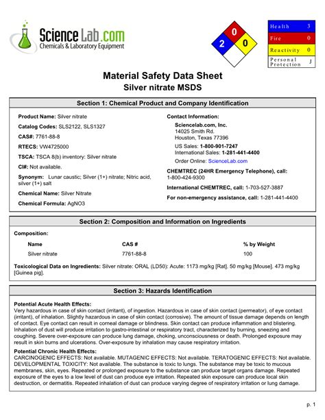 Silver Nitrate Safety Data Sheet. May be corrosive to metals. Silver nitrate product number :