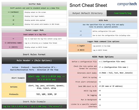 Snort Cheat Sheet. Running snort on the command line is easy, but the number of arguments available might be.