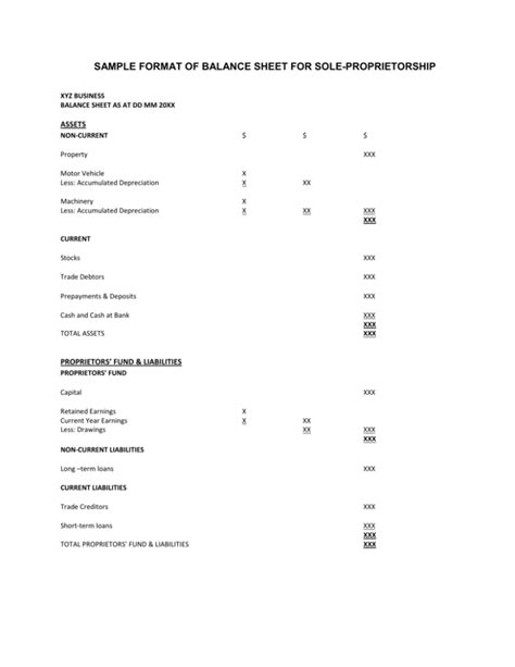 Balance Sheet format for a sole trader
