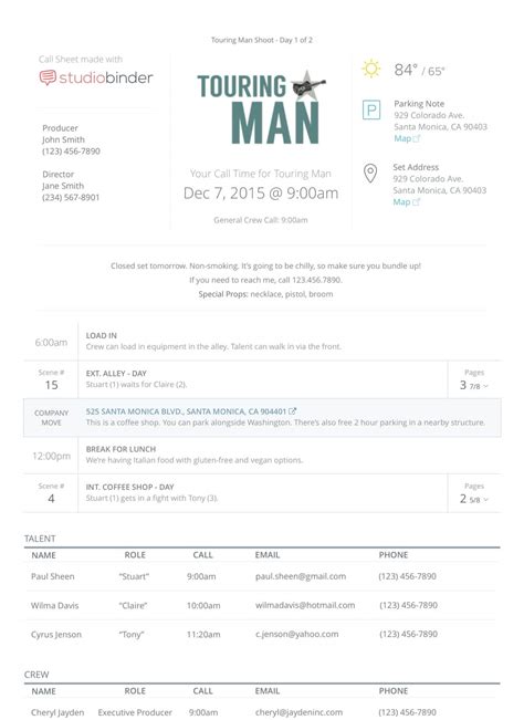 How to Make a Professional Call Sheet StudioBinder Call Sheet Software