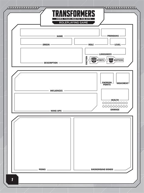 Transformers Rpg Character Sheet. The transformers roleplaying game character journal is an excellent resource that help players fully customize and develop their individual characters. The journal features not only.