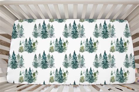 Forest Crib Sheet Forest Crib Bedding Pine Tree Crib Sheet Etsy