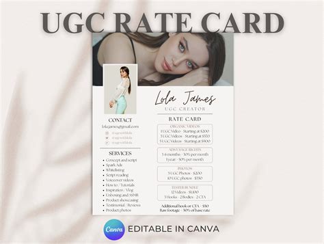 Editable UGC Rate Card Template Minimalistic UGC Rate Sheet Etsy
