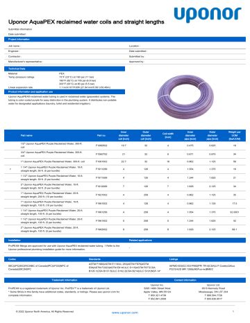 Uponor Pex Spec Sheet. Web understand the basics for working with uponor pex pipe, including flexibility, bend radius, kink repairs, storage, uv. Web use uponor aquapex® white pipe in aquasafe™ residential fire safety systems as well as domestic hot, cold, and hot.
