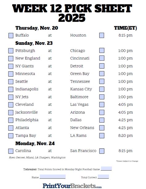 Web download or customize printable or fillable pick sheets for the 2023 nfl week 12 schedule. Choose from blind draw, seeded.