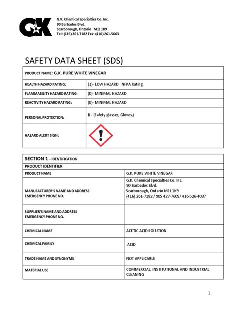Ecoclean solutions 570 oak st copiague ny 11726. Web safety data sheet according to 29cfr1910/1200 and ghs rev. Product and company identification product name: Recommended uses of the product and restrictions on use: Product identifier product identity vinegar, all varieties alternate names vinegar, all varieties 1.2. Web safety data sheet white vinegar 1. 5% to 30% white distilled vinegar manufacturer: May cause allergic skin reaction. Relevant identified uses of the substance or mixture and uses advised against.