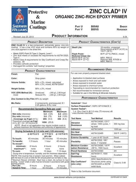 Zinc Clad 4100 Data Sheet. Intended for use over properly prepared. Reducer #58 or reducer #104.