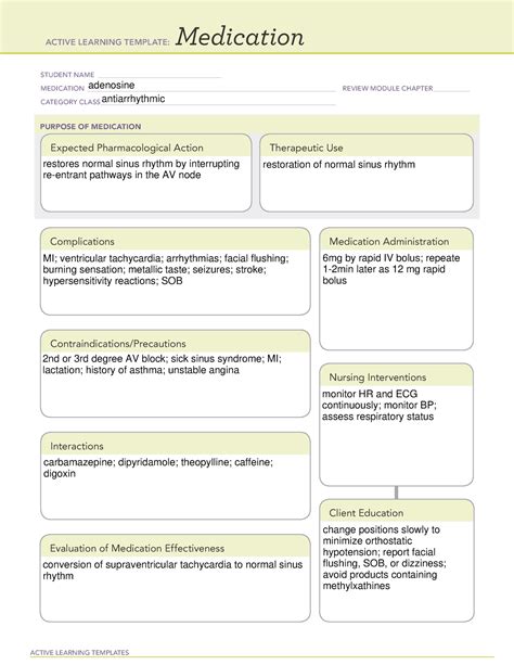 Adenosine Ati Medication Template. Terms in this set (8) adenosine (generic.