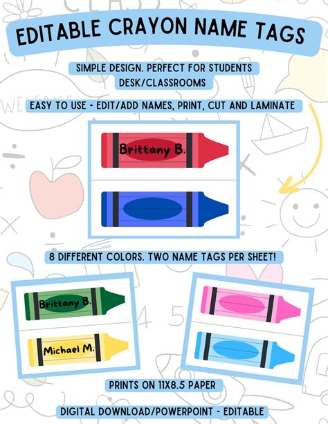 These printable name tags can be used in a variety of ways. Web free pencil and crayon name tag templates 280+ results sort: Web printable name tags in a crayon theme. Web check out our crayon name tags template selection for the very best in unique or custom, handmade pieces from our office. Web transform your classroom into a vibrant, organized space with our editable crayon name tags.