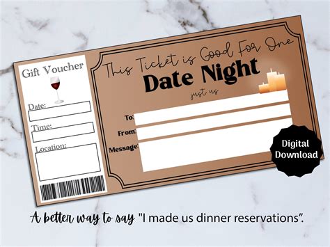 Printable Date Night Gift Certificate Voucher Date Night Etsy UK