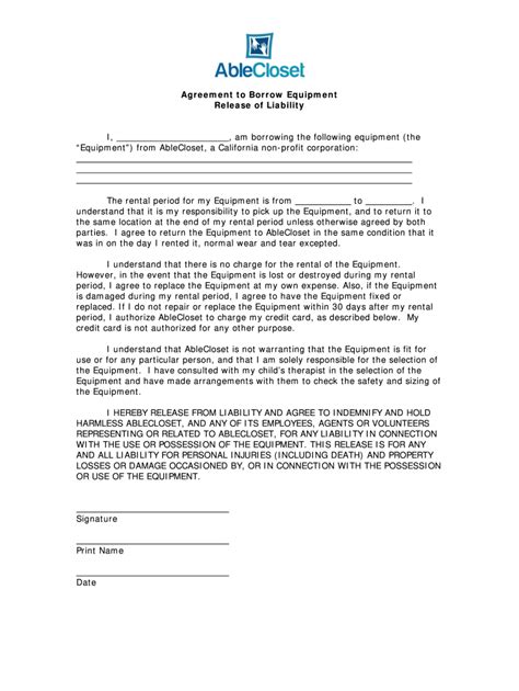Word Doc Printable Equipment Rental Agreement Template Printable