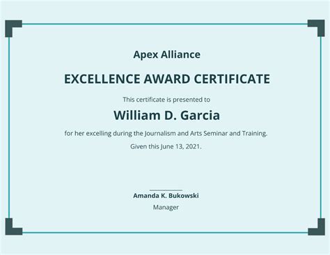 Excellence Award Certificate Templates at