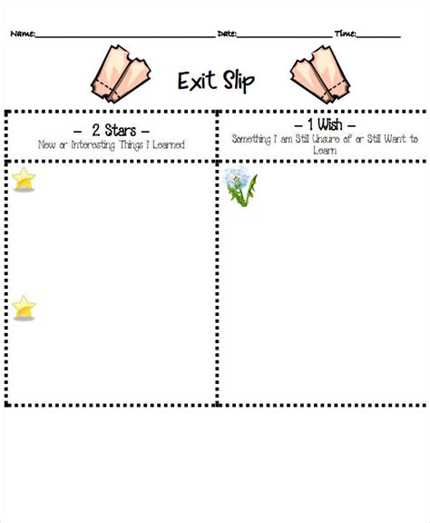 Web for example, an exit ticket for a science class could be filled with stars and planets, while an art class exit slip could be. Web exit slip templates exit slip name: Exit slip template (opens in a new window) exit slip cards (fillable) (opens in a new window).