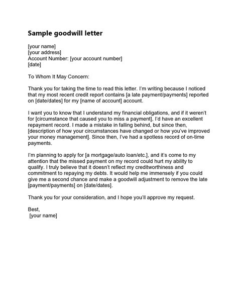 Goodwill Letter To Creditor Social Letter